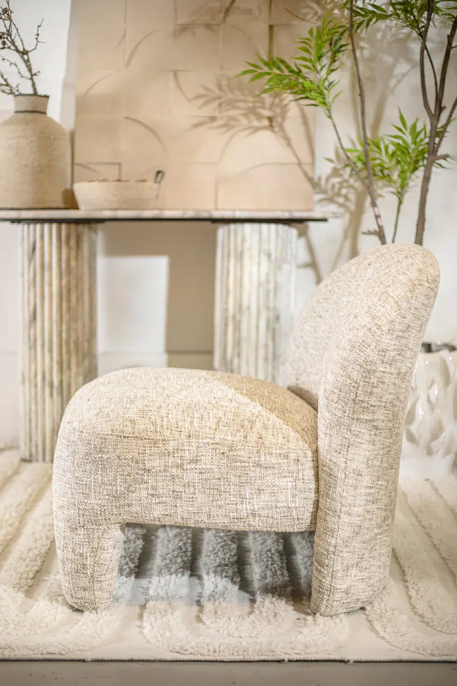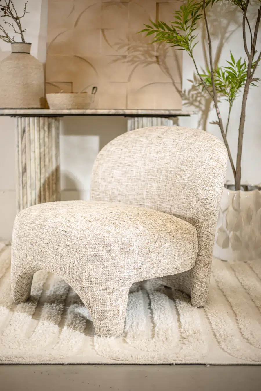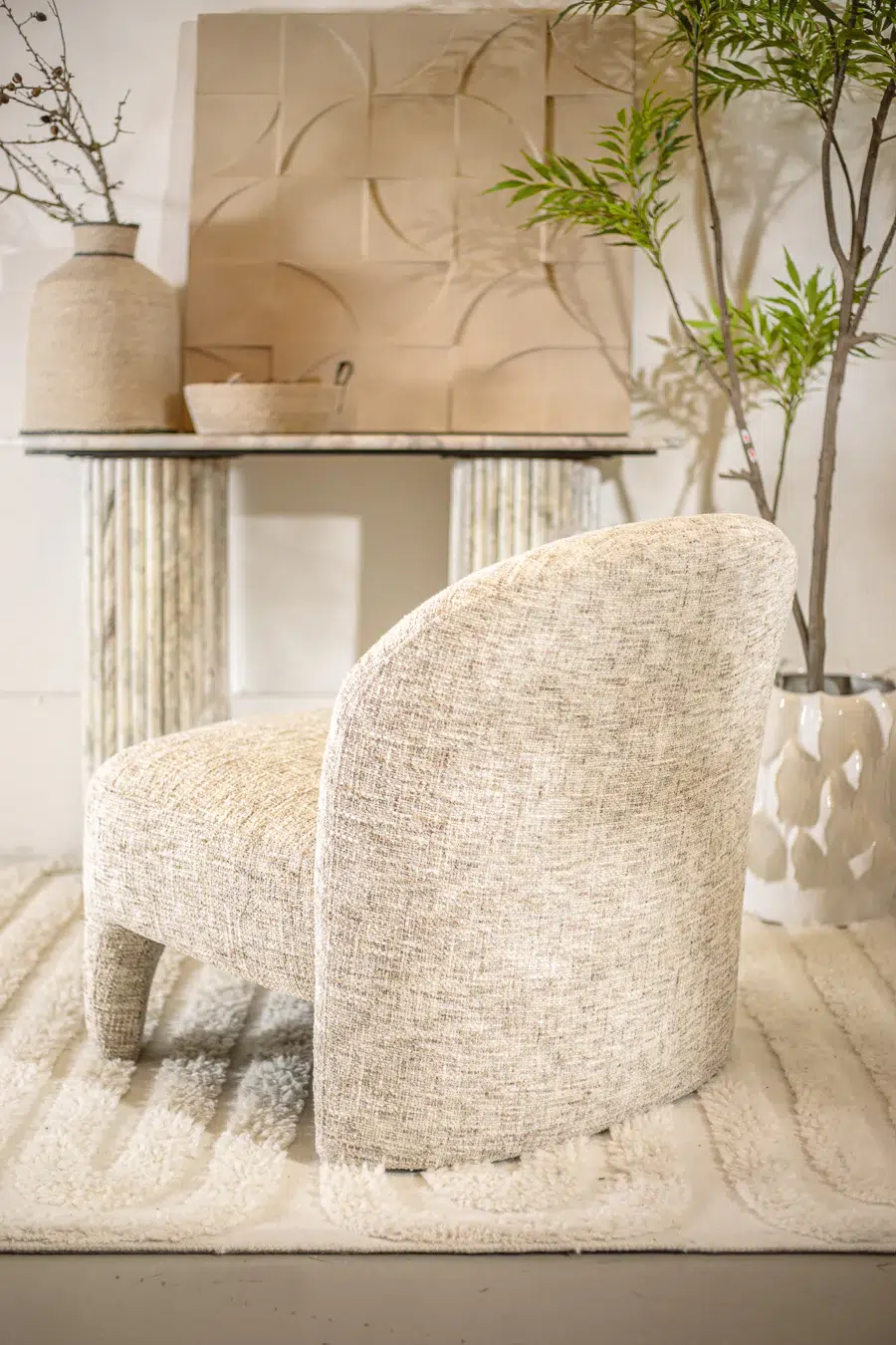 כורסאת BARZI בגוון בז’ מלאנז’, בעיצוב הרמוני וזורם בהשראת צורות טבעיות ואמורפיות.