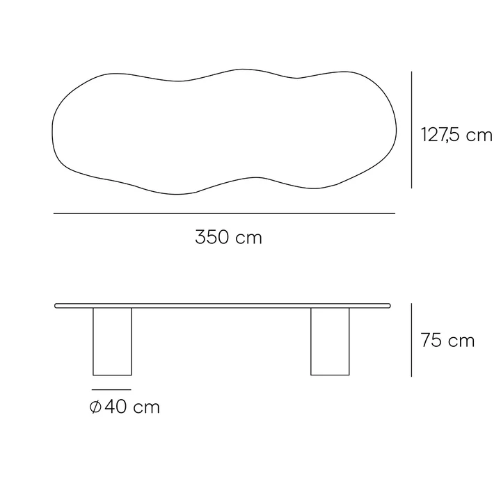 מידות- גובה 75 ס״מ, רוחב 127.5 ס״מ, אורך 350 סמ