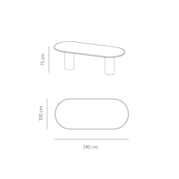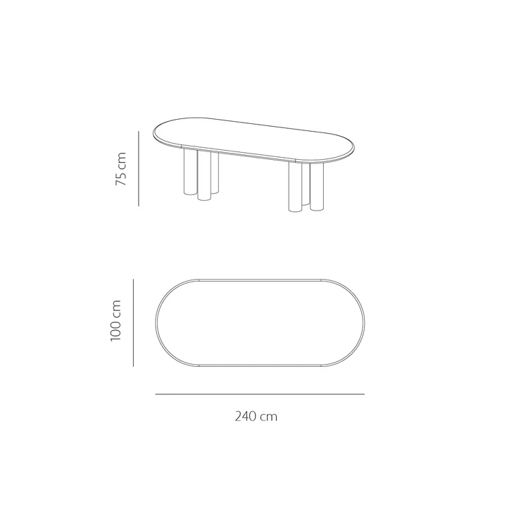 שולחן אוכל מודרני מנימליסטי בצורה אובלית עשוי צמנט בעיבוד מיקרוסקין לנראות מיוחדת ועמידה.