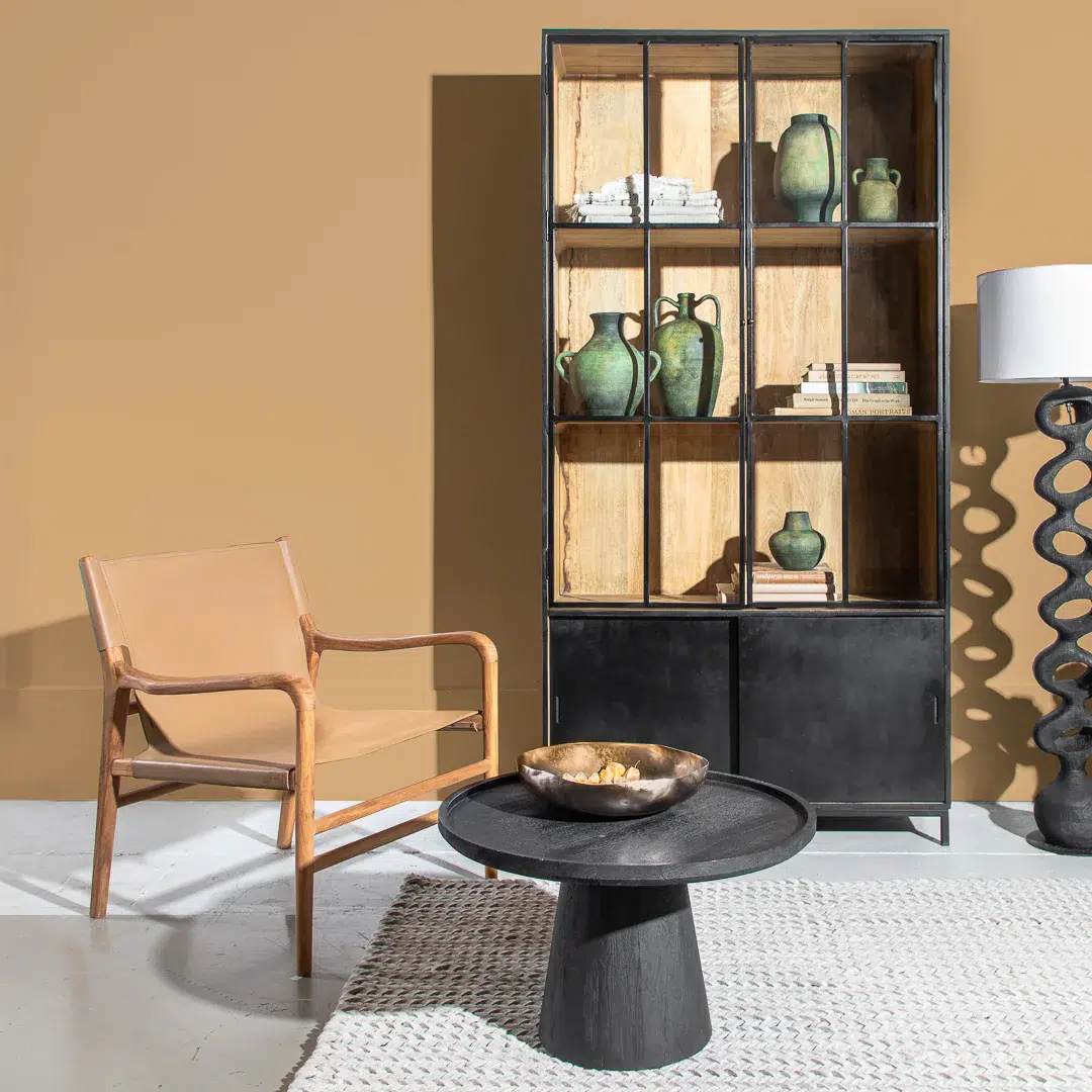 כורסאת עור LEMON בגוון ניוד/שחור, בעיצוב נקי ואלגנטי כיחידה אחת.
