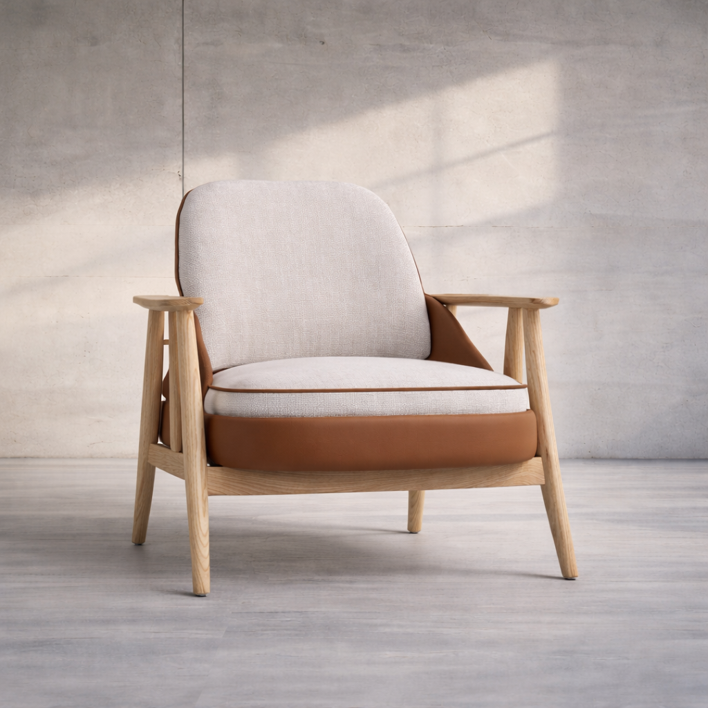 כורסא MORI בסטייל משגע לכל חלל. מגיעה בכמה שילובים: ידית טבעי+בד בז/ד.ע.קאמל ידית אגוז+בד בז/ד.ע.קאמל ידית אגוז+בד בז/ד.ע.בז