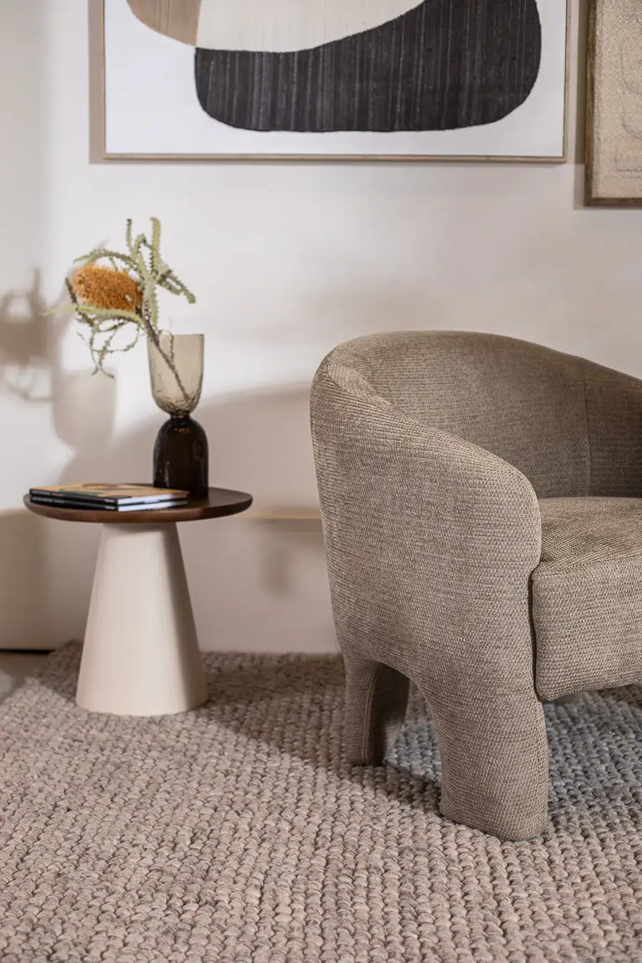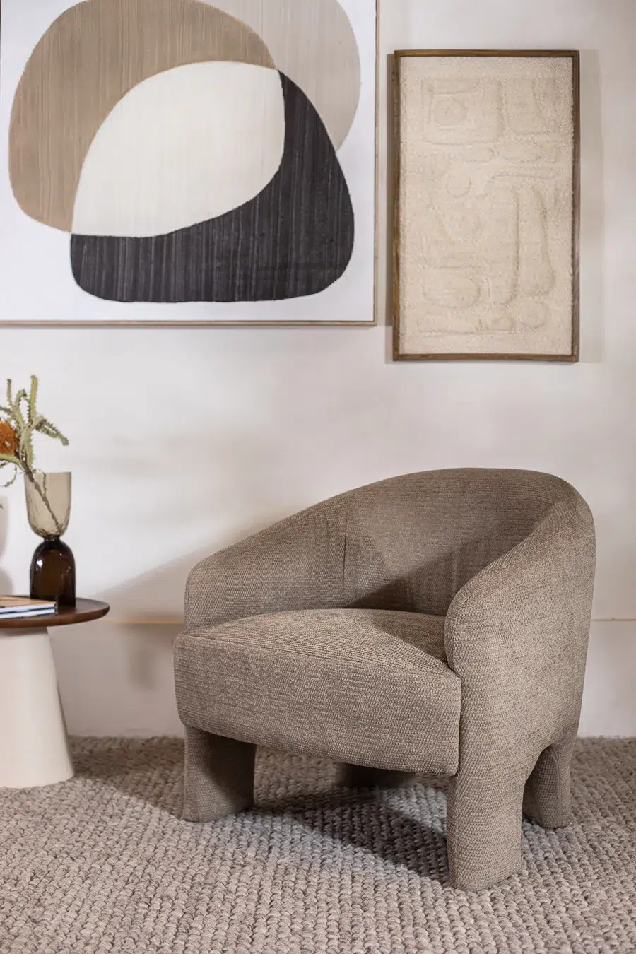 כורסאת MORI בגוון חום־צהבהב חמים/אפור, בעיצוב מזמין ונעים לעין.