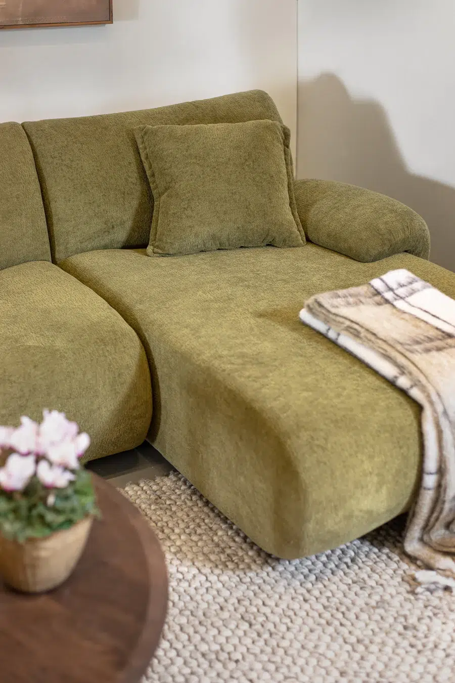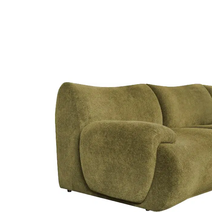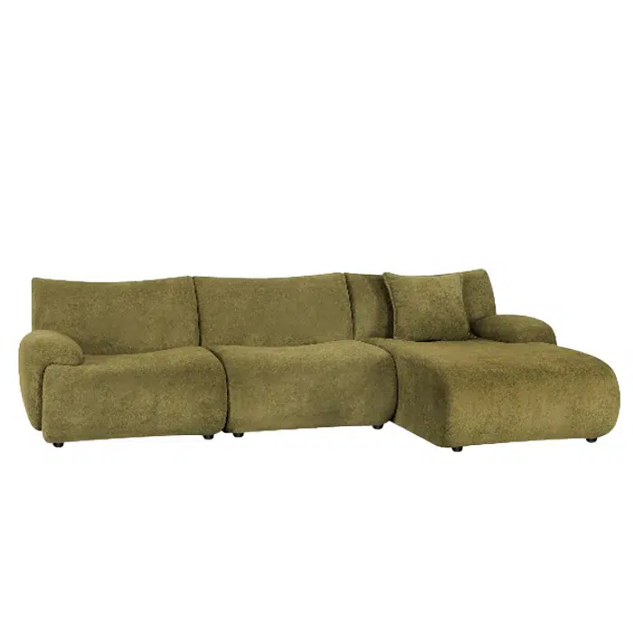 ספת שזלונג OLIVIA GREEN עם קצה ימני מוארך בגוון ירוק מביאה טאץ' רענן ומלא סטייל לכל חלל. ספה רחבת ידיים ומרופדת בנוחות מקסימלית, הנשענת על רגלי מתכת שחורות שמדגישות את הקו המודרני שלה.